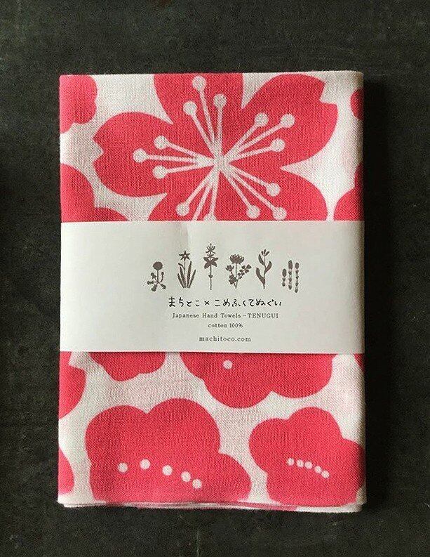 春らしい梅と桜の柄の手ぬぐいです。柄が細かいので、たたんでもいろんな柄が見え切ったり、縫ったりするのにアレンジしやすい一枚です。