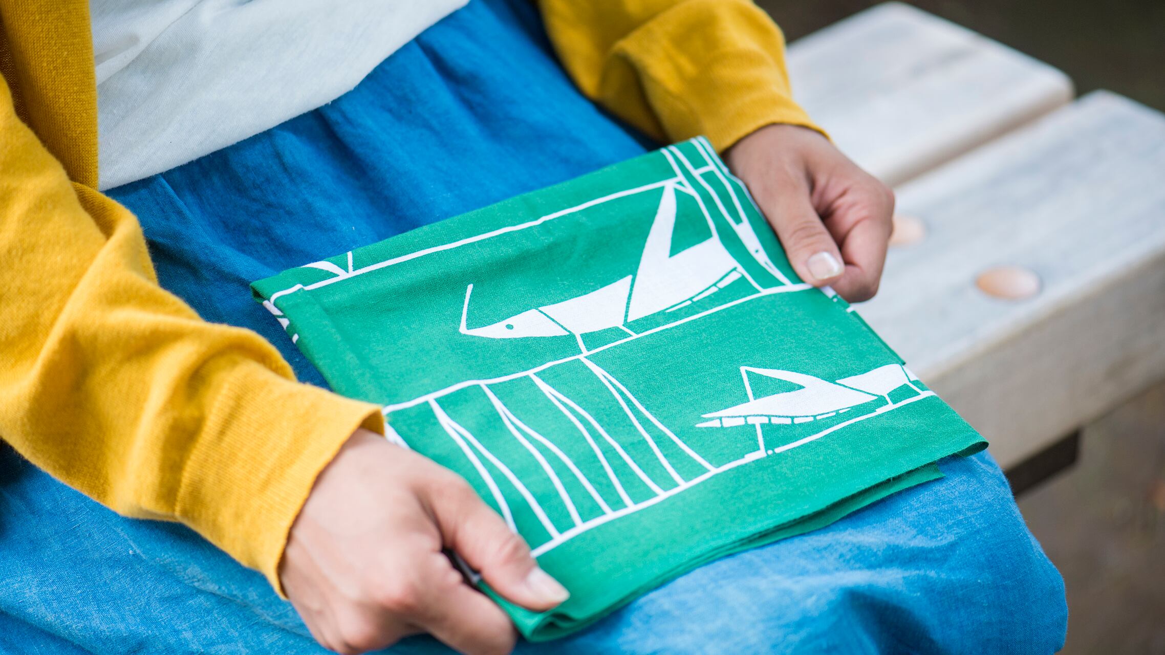 横位置柄なので、シミがついたり色褪せた時には半分に切っておしぼりや、布巾として使えます。